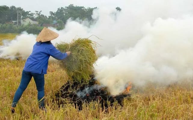 Sau mỗi vụ gặt, thay vì thu gom rơm rạ để tái sử dụng, không ít hộ dân chọn cách đốt bỏ ngay trên đồng ruộng cho “sạch đất, nhanh gọn”. Tuy nhiên, thói quen này đang gây ra nhiều tác hại nghiêm trọng. Khói rơm rạ khi cháy sinh ra bụi mịn PM2.5, khí CO₂, CO, NO₂ và các hợp chất hữu cơ độc hại – những tác nhân gây ô nhiễm không khí, ảnh hưởng trực tiếp đến hệ hô hấp, đặc biệt đối với người già và trẻ nhỏ. Nhiều thời điểm, khói từ các đám đốt rơm rạ phủ trắng cả cánh đồng, lan ra đường, làm giảm tầm nhìn, tiềm ẩn nguy cơ tai nạn giao thông nghiêm trọng.