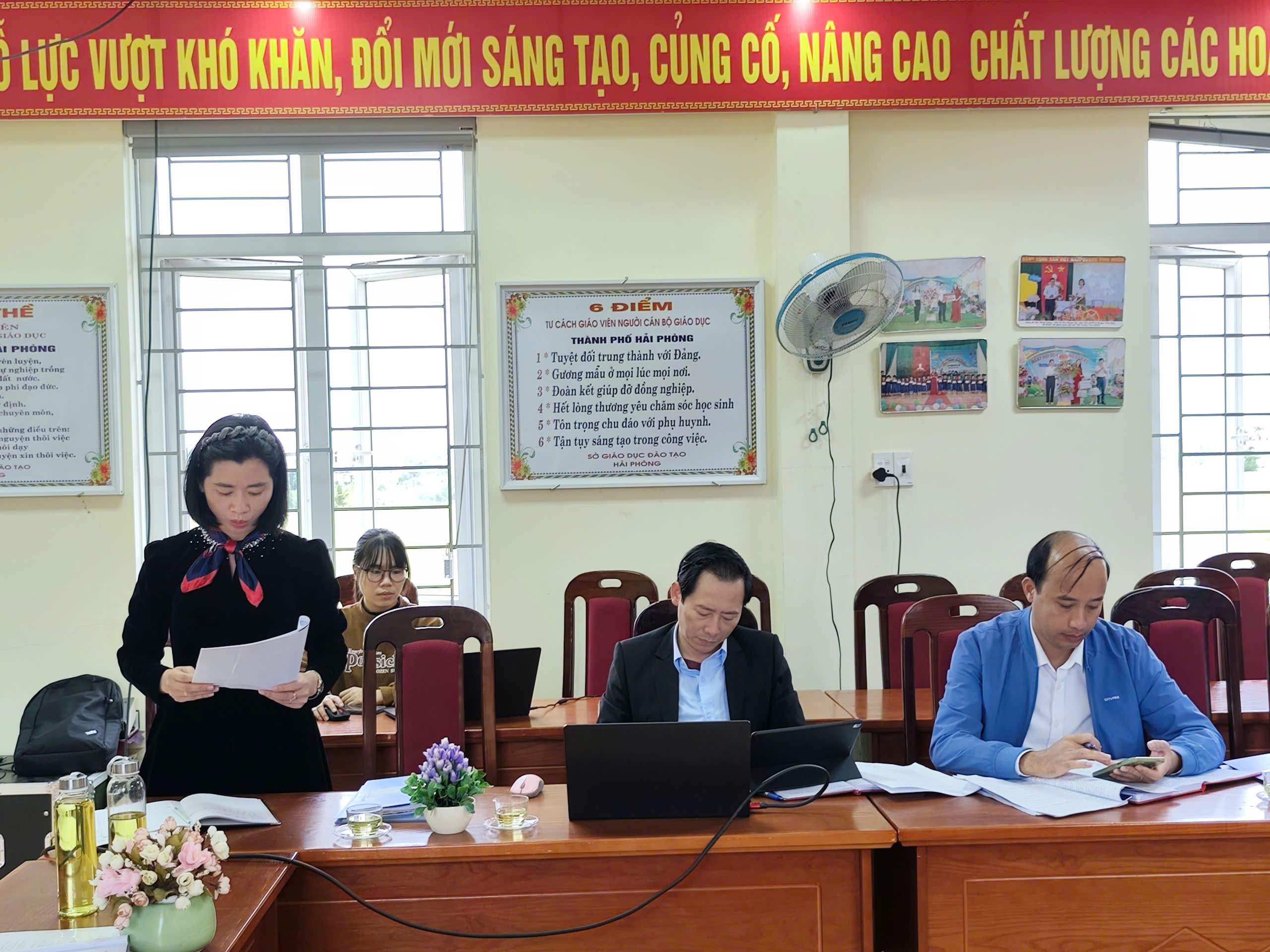 Tại buổi làm việc, đồng chí Vũ Thị Phương Hiệu trưởng Trường Mầm non Hùng Thắng báo cáo về việc thực hiện công khai tài chính, các khoản thu – chi đầu năm học và các khoản thu thỏa thuận với phụ huynh học sinh.