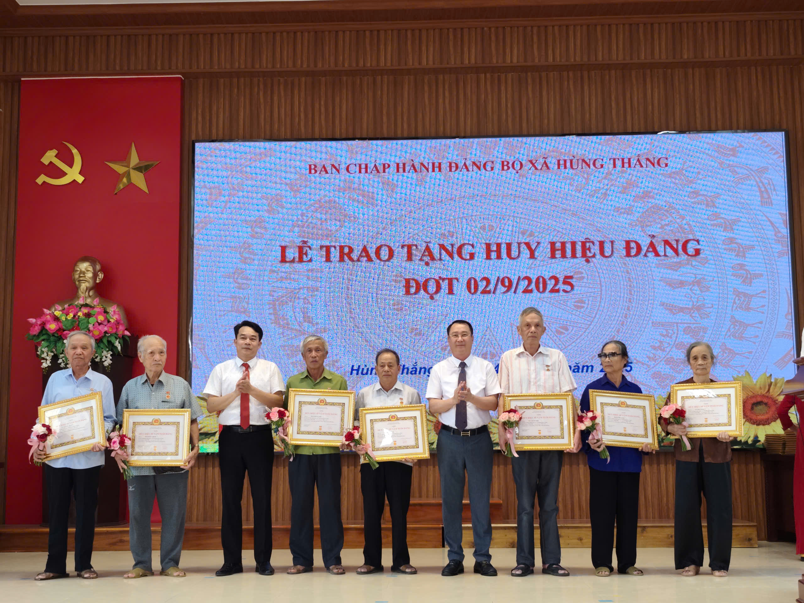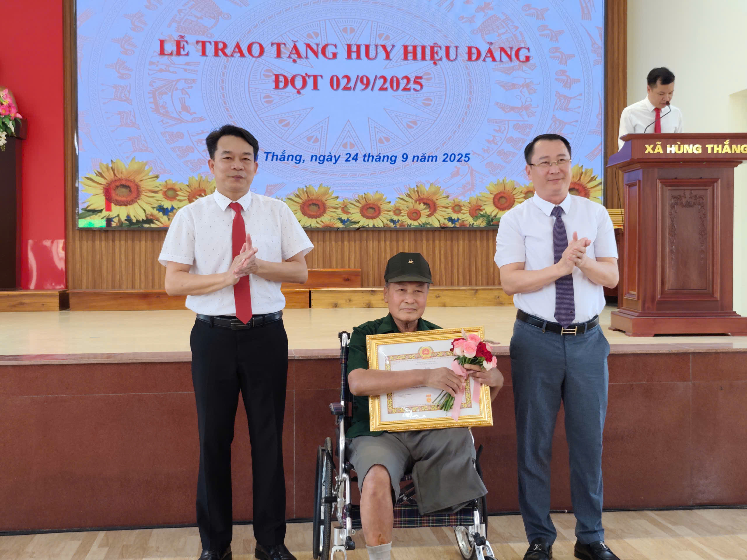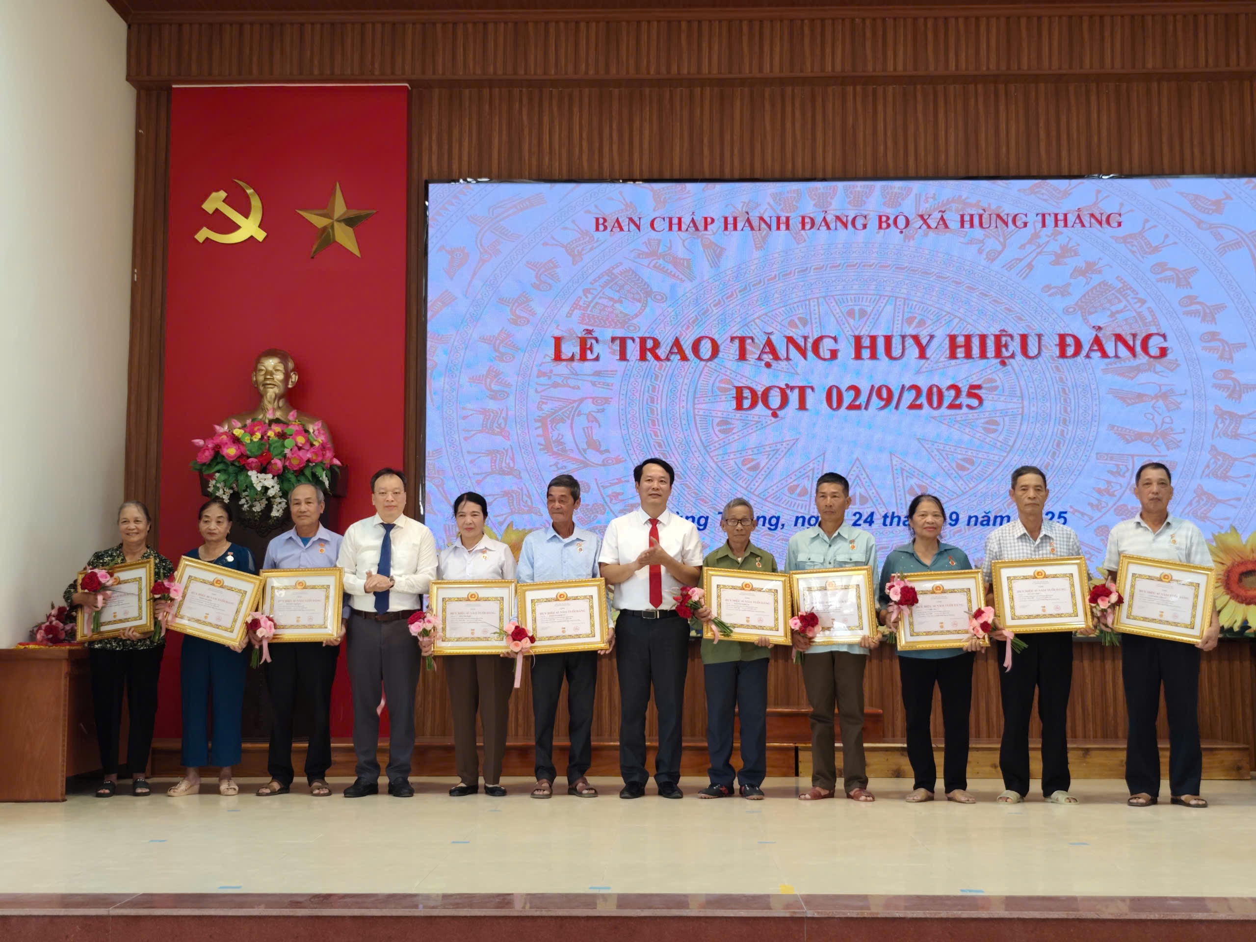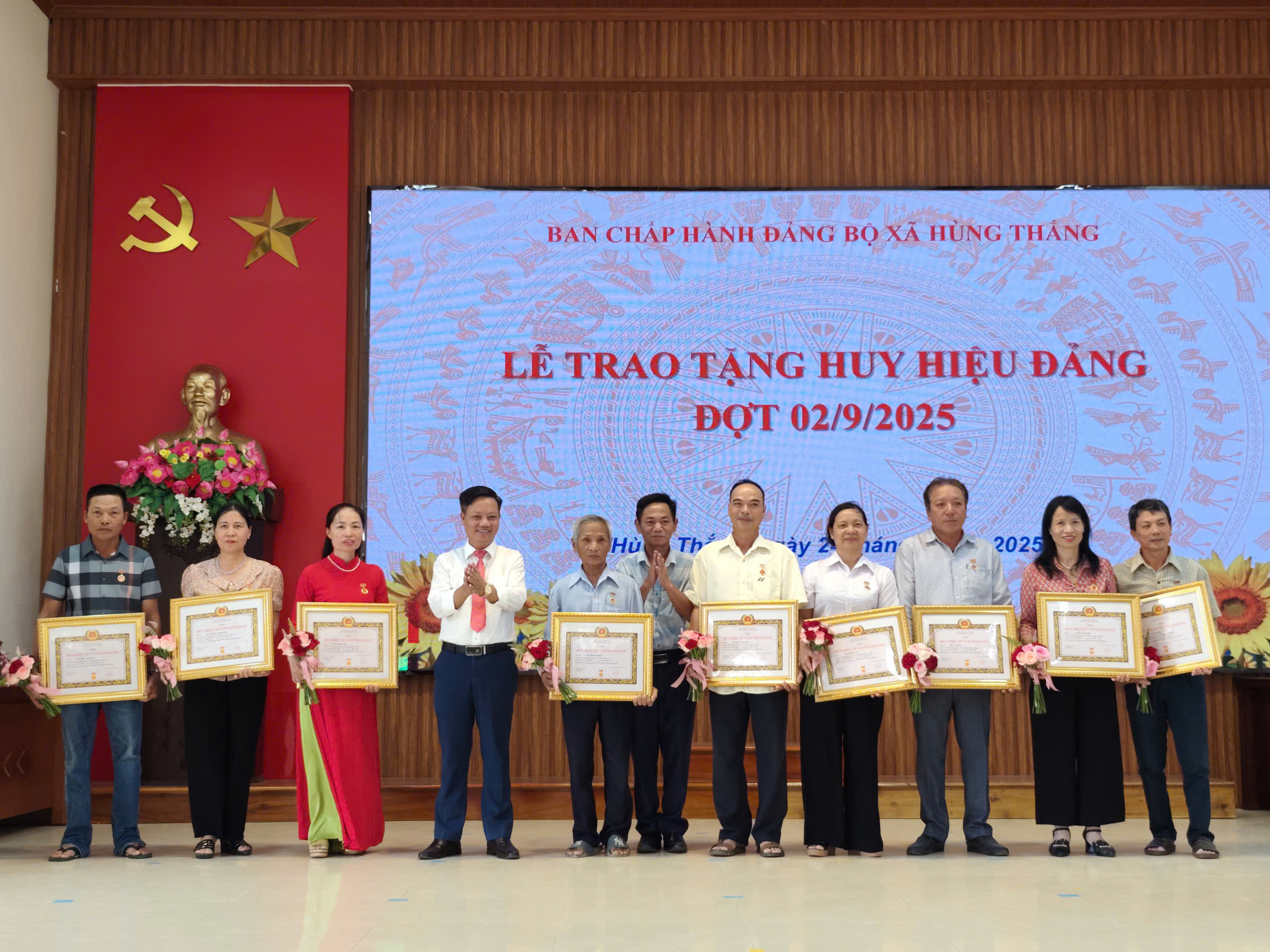 Trong đợt này, Đảng bộ xã Hùng Thắng vinh dự có 35 đảng viên được trao tặng Huy hiệu Đảng. Trong đó, có 4 đồng chí nhận Huy hiệu 60 năm tuổi Đảng; 5 đồng chí nhận Huy hiệu 55 năm tuổi Đảng; 3 đồng chí nhận Huy hiệu 50 năm tuổi Đảng; 10 đồng chí nhận Huy hiệu 45 năm tuổi Đảng, 4 đồng chí nhận Huy hiệu 40 năm tuổi Đảng; và 9 đồng chí nhận Huy hiệu 30 năm tuổi Đảng.