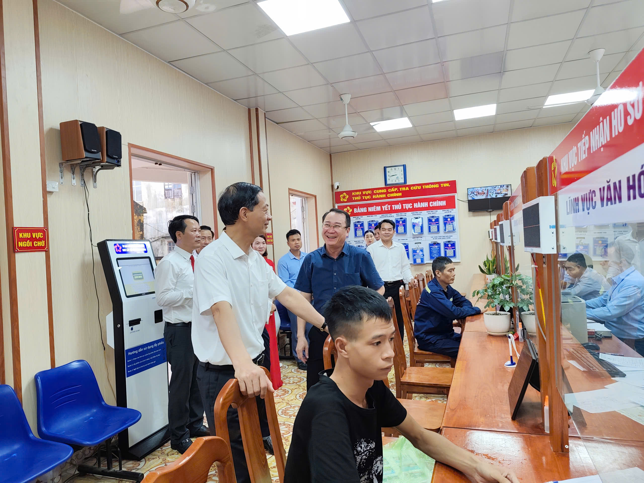 Đồng chí Phó Bí thư Thường trực Thành ủy Đỗ Mạnh Hiến kiểm tra thực tế tại các phòng làm việc và Trung tâm Phục vụ hành chính công xã Hùng Thắng.