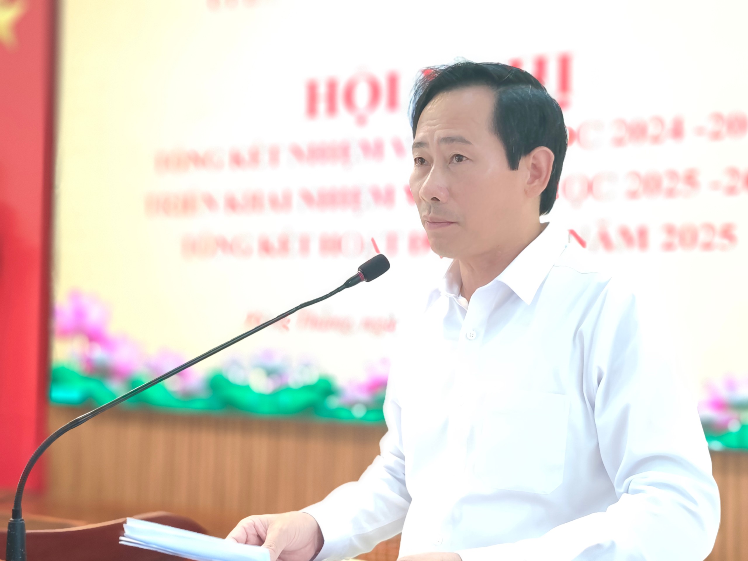 Phát biểu tại hội nghị, đồng chí Vũ Trọng Thủy – PCT UBND xã ghi nhận những kết quả nổi bật của ngành giáo dục trong năm học vừa qua, đồng thời nhấn mạnh: trong bối cảnh thực hiện chính quyền địa phương 2 cấp, UBND xã theo thẩm quyền quản lý, cần tiếp tục tăng cường sự lãnh đạo của Đảng, quản lý thống nhất của Nhà nước, phát huy vai trò của Mặt trận Tổ quốc và các đoàn thể; quan tâm xây dựng đội ngũ nhà giáo vững mạnh, bố trí hợp lý để đáp ứng chương trình giáo dục phổ thông mới; giữ vững chất lượng đại trà, nâng cao chất lượng mũi nhọn; chú trọng giáo dục đạo đức, kỹ năng sống gắn với bản sắc văn hóa địa phương; tiếp tục đầu tư cơ sở vật chất, xây dựng trường chuẩn quốc gia, đẩy mạnh chuyển đổi số và ứng dụng công nghệ trong quản lý, giảng dạy, góp phần thực hiện thắng lợi Nghị quyết Đại hội Đảng bộ xã nhiệm kỳ 2025 – 2030.