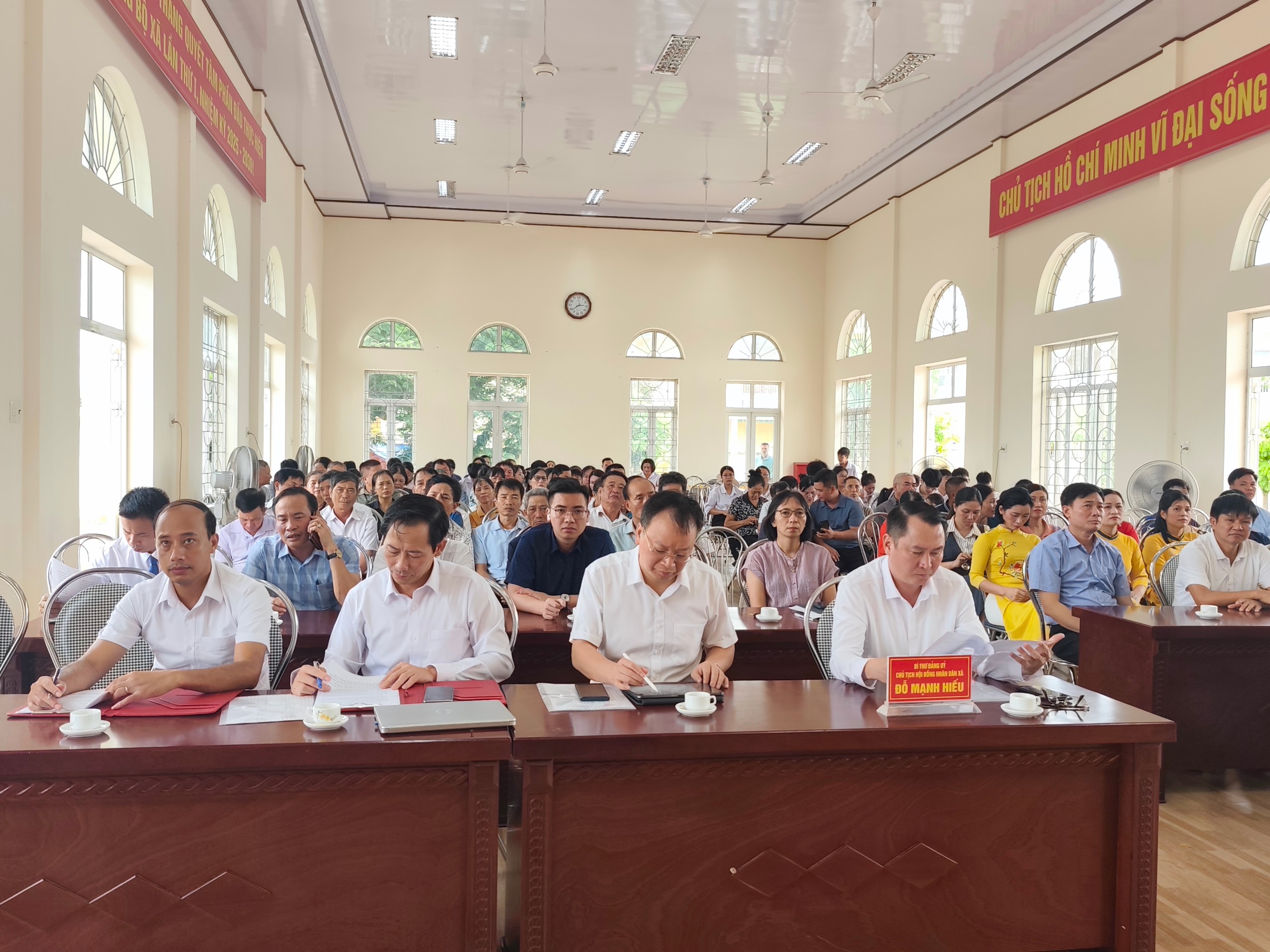 Dự hội nghị có đồng chí Đỗ Mạnh Hiếu – Bí thư Đảng ủy, Chủ tịch HĐND xã; đồng chí Nguyễn Ngọc Huy - Phó Bí thư, Chủ tịch UBND xã. Các đồng chí lãnh đạo HĐND, UBND, Hiệu trưởng, giáo viên, học sinh đạt giải các trường học, Bí thư, trưởng thôn, khu dân cư trên địa bàn xã.