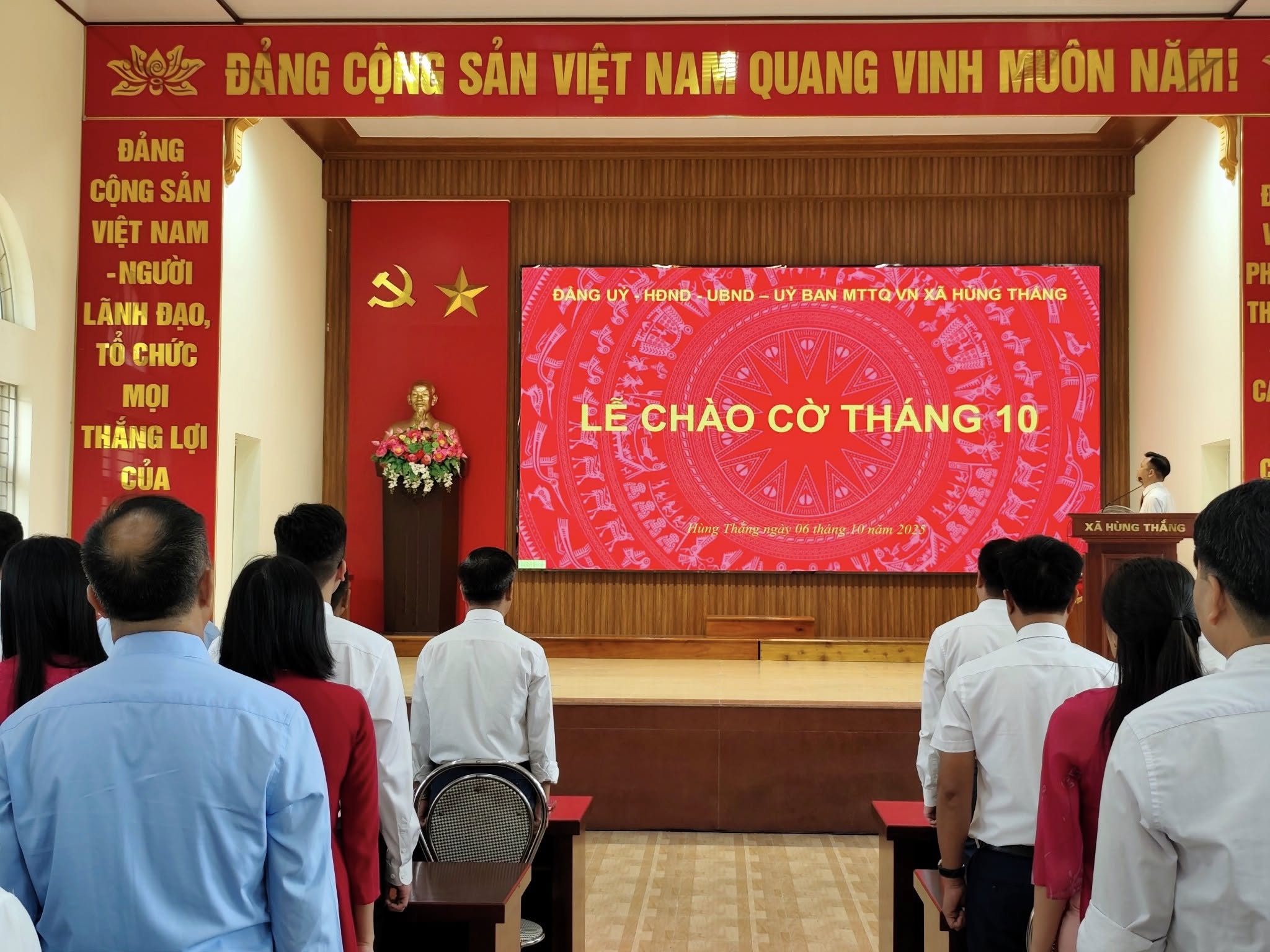 Sáng 6/10, tại Hội trường Nhà văn hóa, Đảng Ủy - HĐND – UBND – UBMT TQ xã Hùng Thắng tổ chức Lễ chào cờ đầu tháng 10 trong không khí trang nghiêm trước khi bước vào một ngày làm việc của tuần mới, tháng mới.
