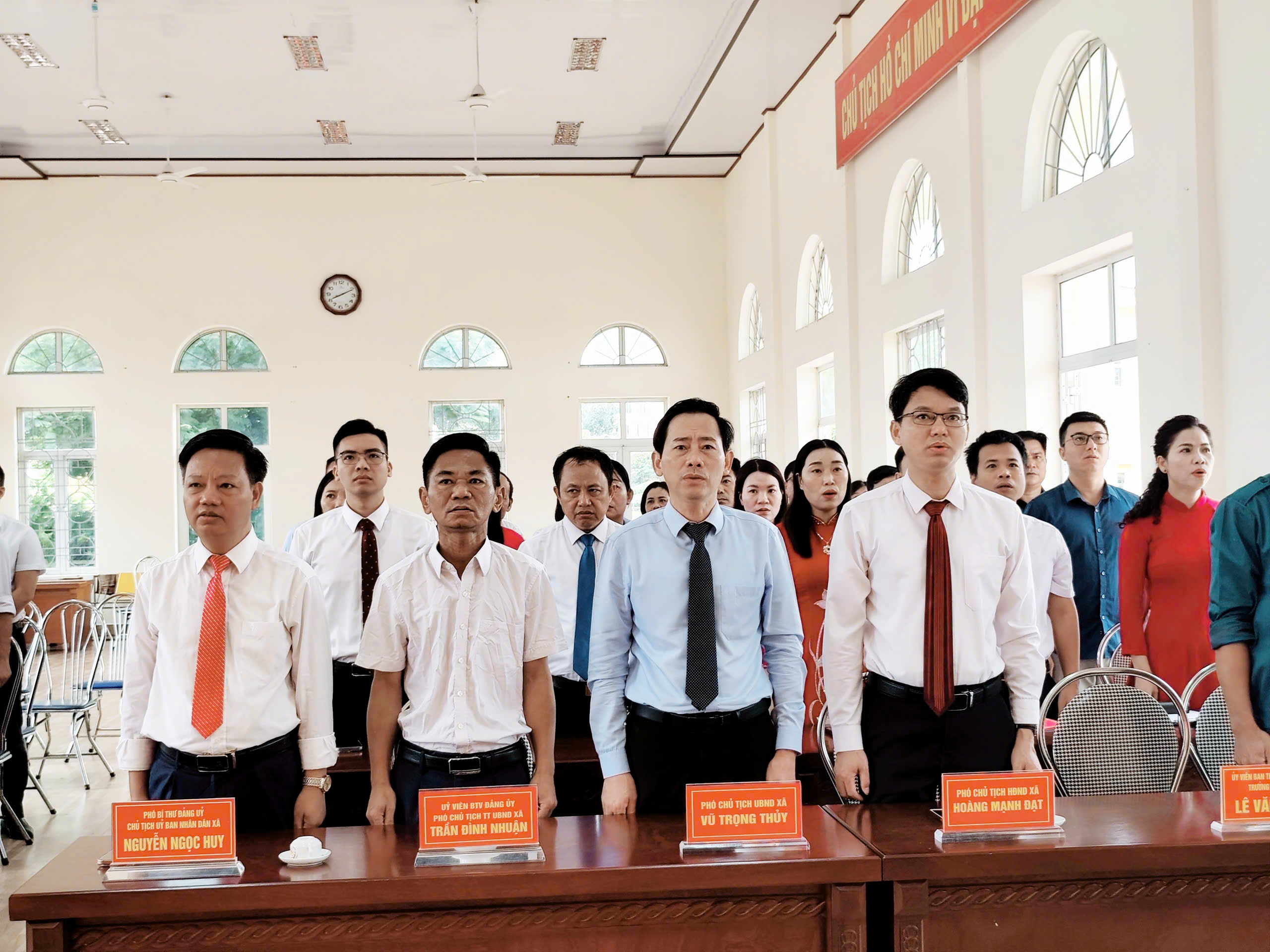 Không khí trang nghiêm trong lễ chào cờ đầu tháng tại trụ sở UBND xã Hùng Thắng