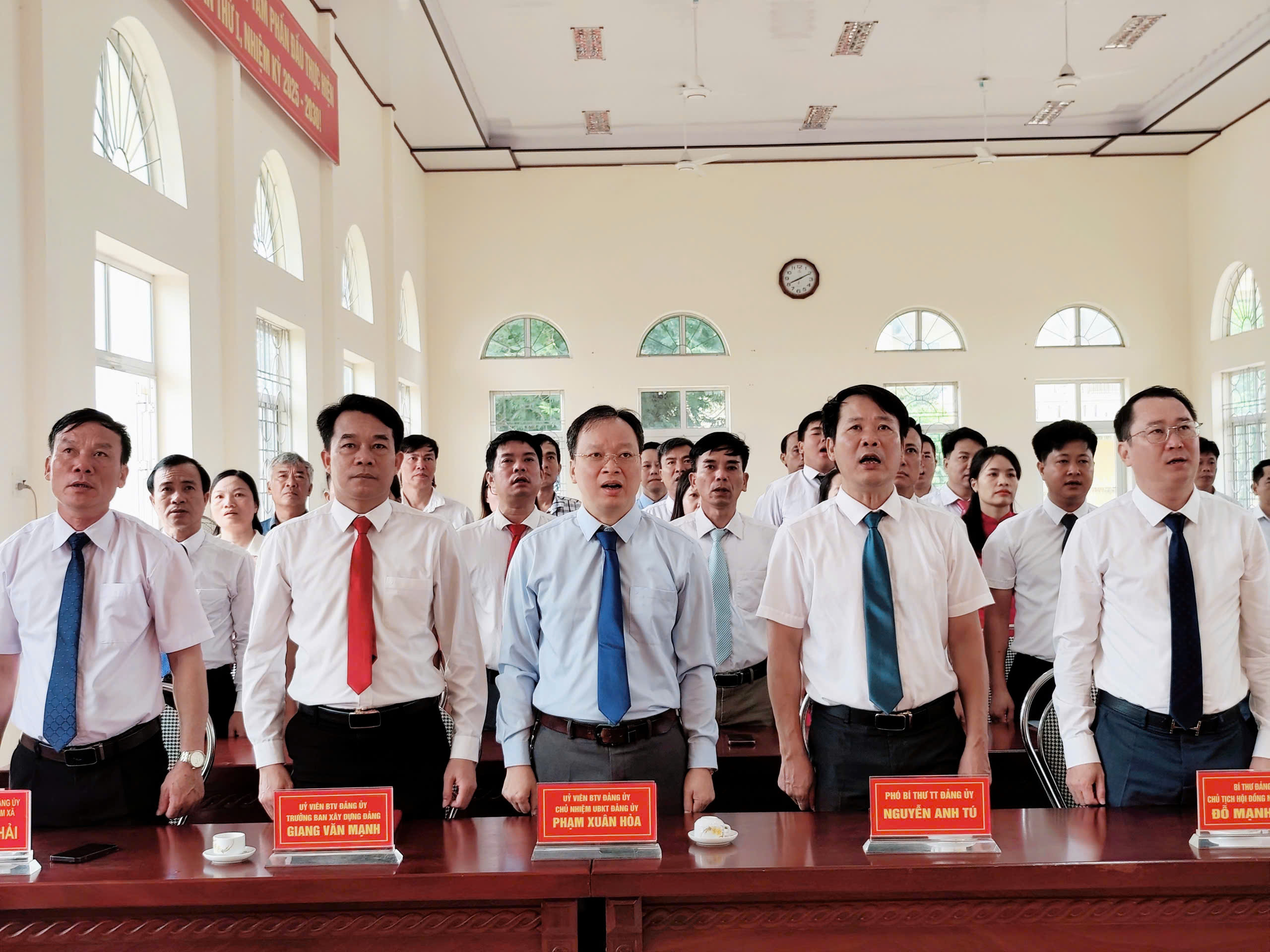 Trong không khí trang nghiêm, toàn thể cán bộ, đảng viên, công chức, viên chức đã cùng nhau hát vang Quốc ca trên nền nhạc thể hiện lòng tự hào dân tộc, ý thức trách nhiệm và quyết tâm thực hiện tốt nhiệm vụ chính trị được giao.