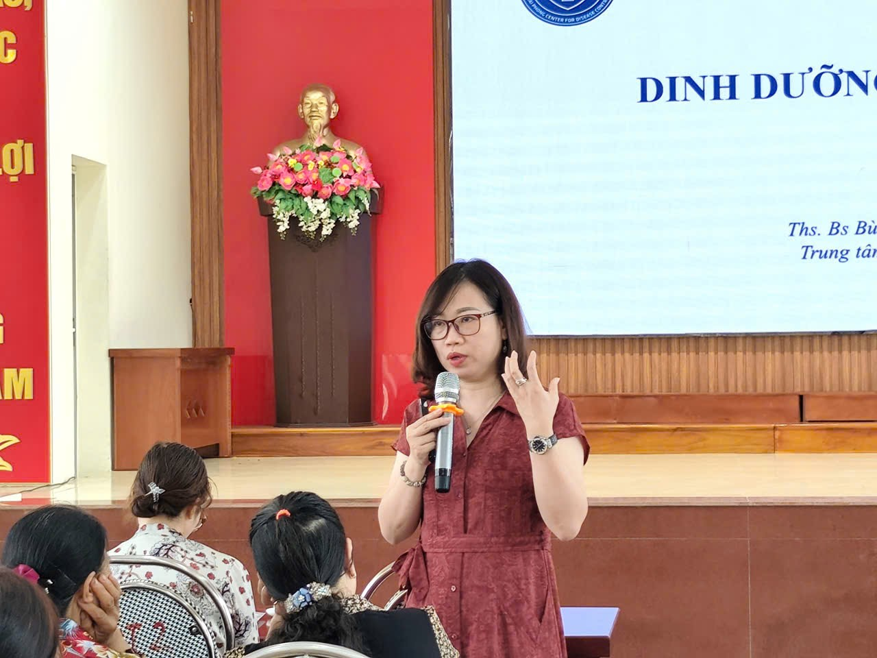 Tại hội nghị, ThS.BS. Bùi Thị Thu Hường – Trưởng khoa Dinh dưỡng, Trung tâm Kiểm soát bệnh tật thành phố đã trực tiếp truyền đạt nhiều nội dung thiết thực. Chương trình tập huấn tập trung vào các kiến thức quan trọng như: nhận biết tình trạng thiếu máu, thiếu sắt và suy dinh dưỡng ở trẻ nhỏ; phát hiện dị ứng sữa ở trẻ em; vai trò của vi chất dinh dưỡng đối với sức khỏe; dinh dưỡng hợp lý trong phòng chống thiếu kẽm; giá trị và cách sử dụng rau quả đúng cách; tác động của đồ uống có đường đối với trẻ em; lợi ích của nuôi con bằng sữa mẹ; hướng dẫn ăn bổ sung hợp lý cho trẻ.